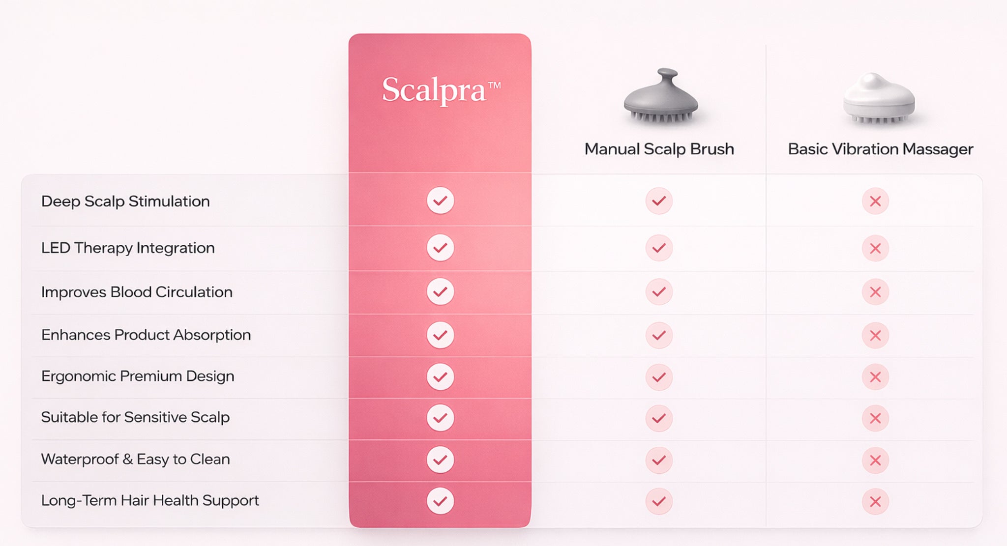 Dank des kompakten, ergonomischen Designs liegt Scalpra™ angenehm in der Hand und eignet sich ideal für die regelmäßige Anwendung – zuhause oder unterwegs.